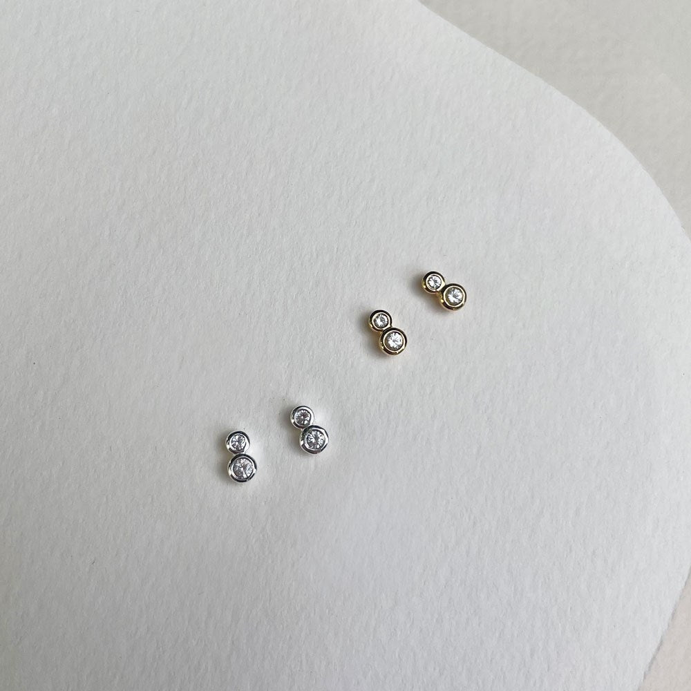 The Linda Tahija Duo Stud Earrings feature natural white topaz stones, bezel set.