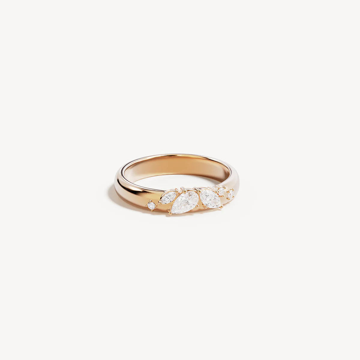 Crystal band ring design designed for intentional layering.