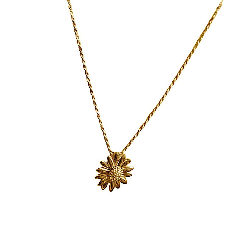 Crafted in recycled silver with 18ct gold plate, this piece features a small daisy pendant hung on a rope chain.