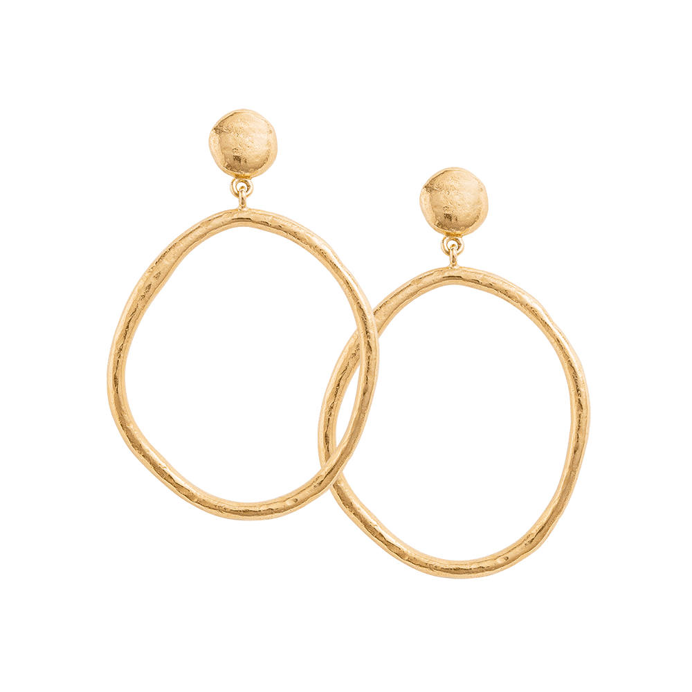 Simple, sophisticated and a statement piece, the Golden Light Earrings have a slightly hammered texture and include a drop stud with an organic shaped hoop.