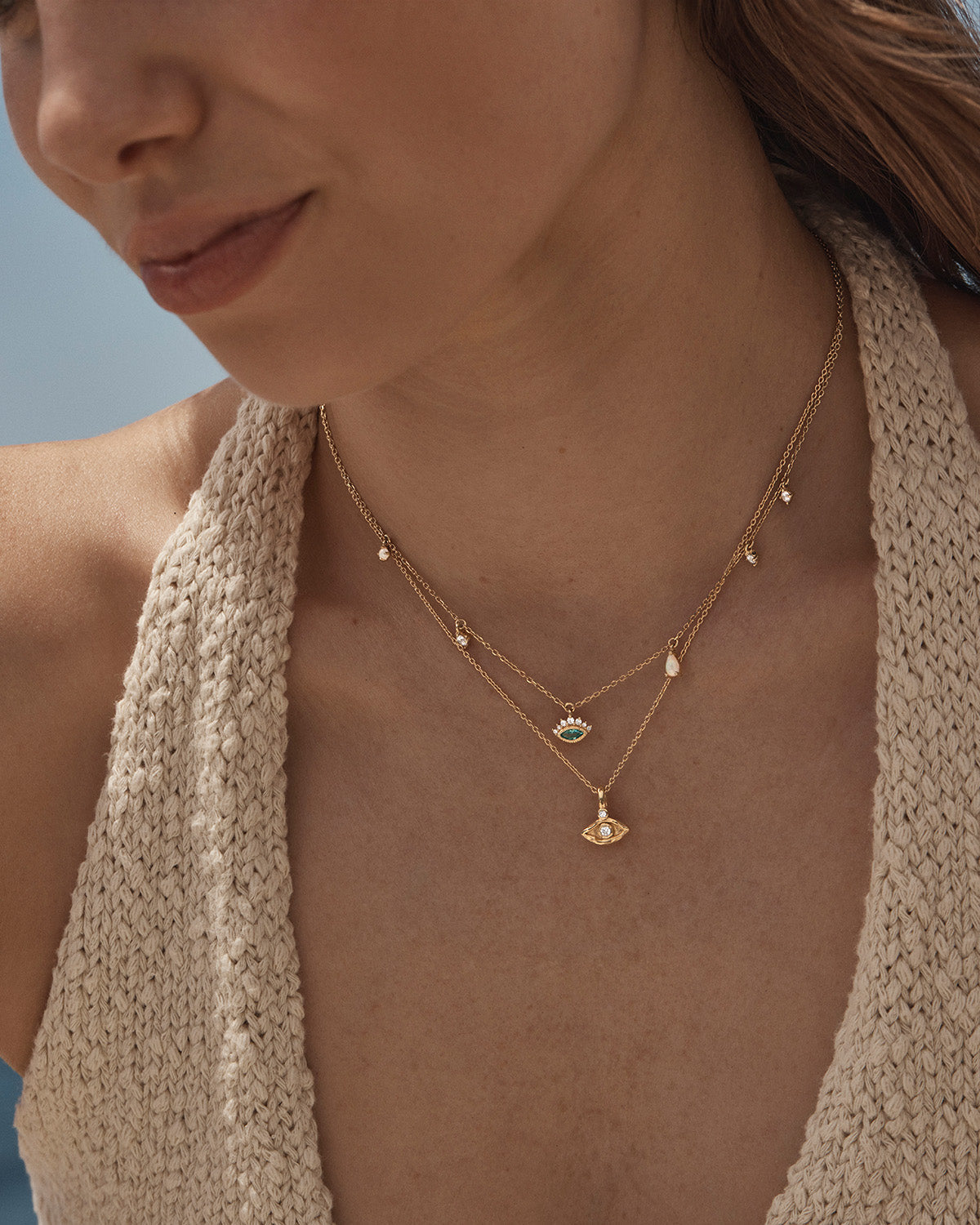 Set with lab-grown opals and lab-grown blue Paraiba marquise-cut gemstone, by charlotte's luminous evil eye will assist you in shedding all that does not serve you, allowing you to move into the new year with purpose and peace.