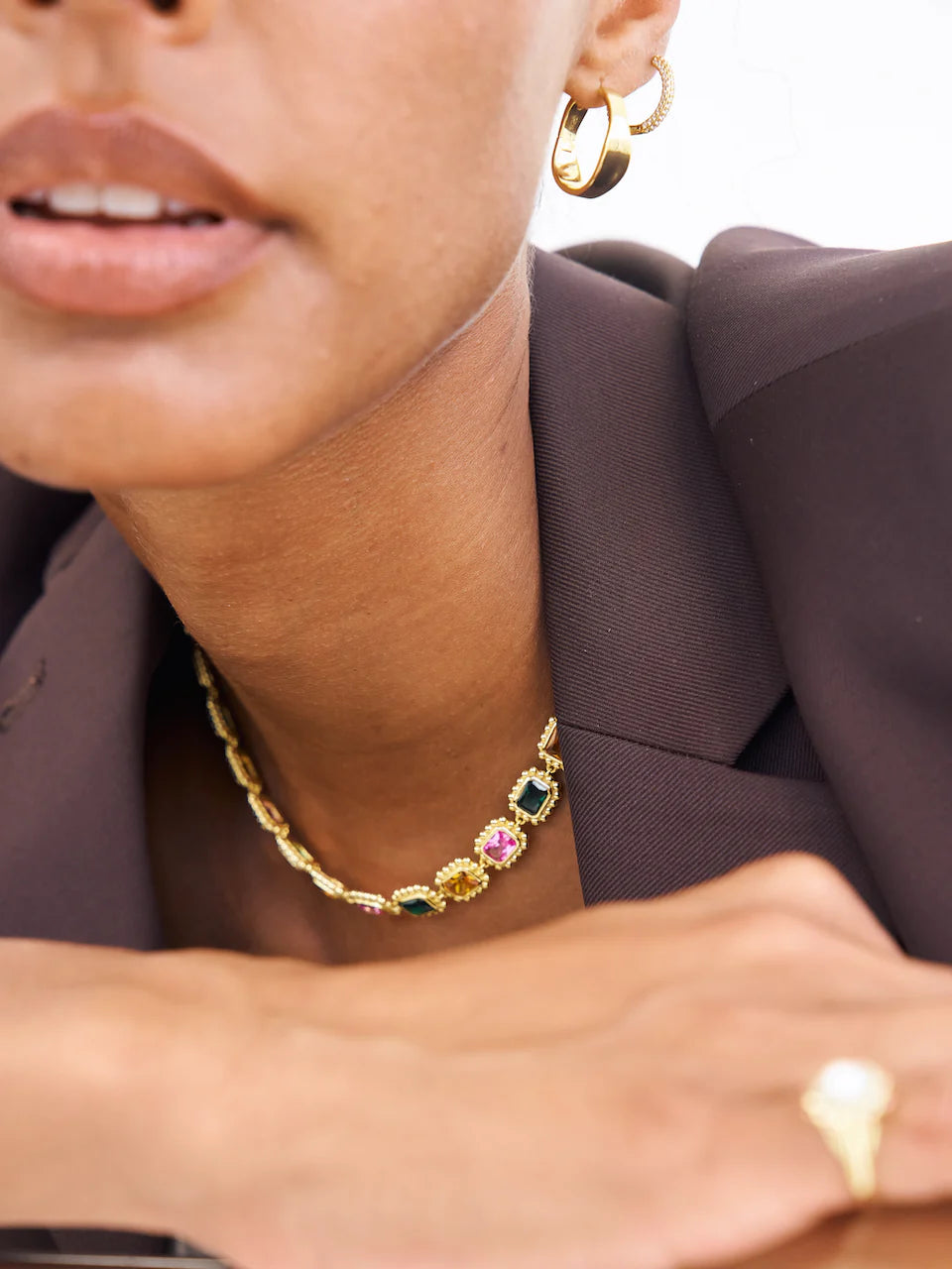 Their beautiful designs feature coloured gemstones, freshwater pearls and tiny crystals. Pretty pieces perfect for layering or wearing alone.