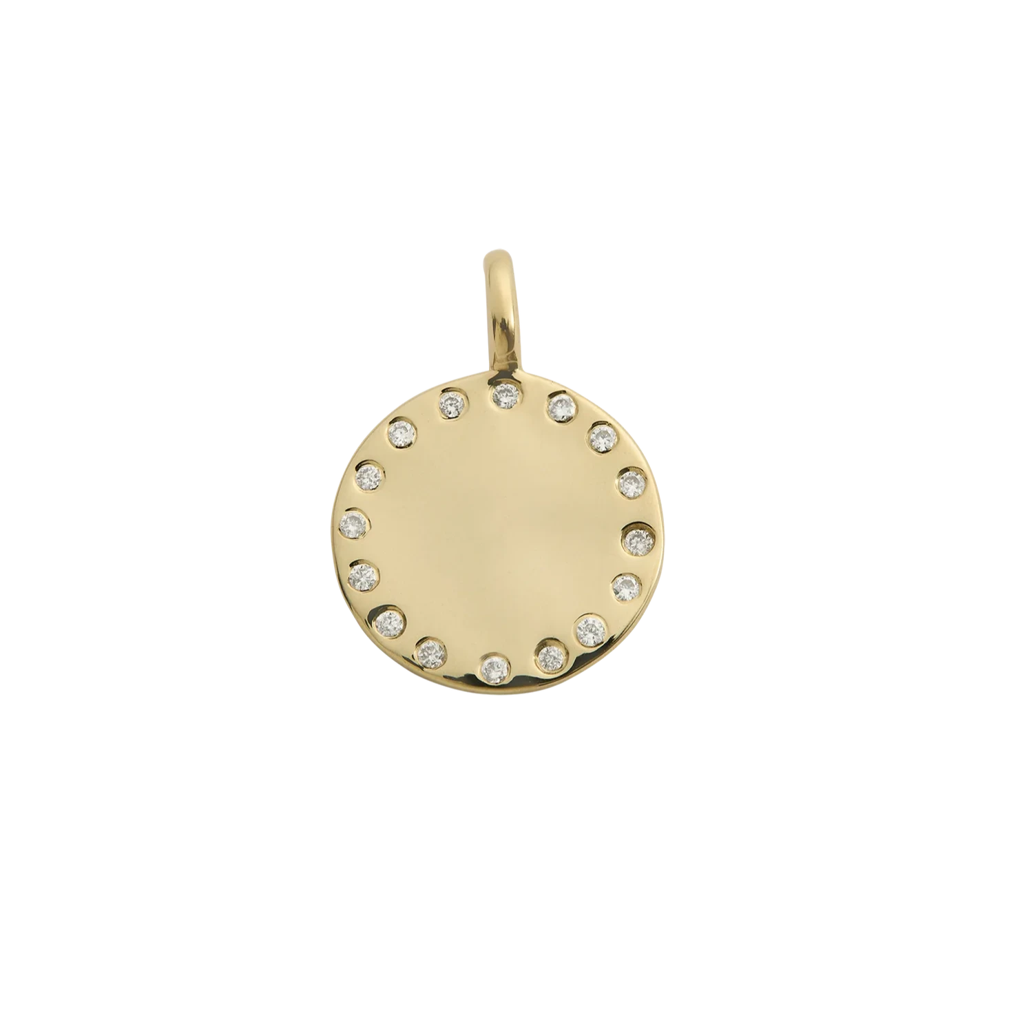 The most luxurious charm in the Resonate collection, Solar Charge is powerful in its simplicity ~ an organic textured disc is embellished with 16 White Diamonds, set around the edge, symbolising purity, clarity, and strength. This amplifies the charm’s essence of empowerment and inner light, guiding you with elegance and grace.