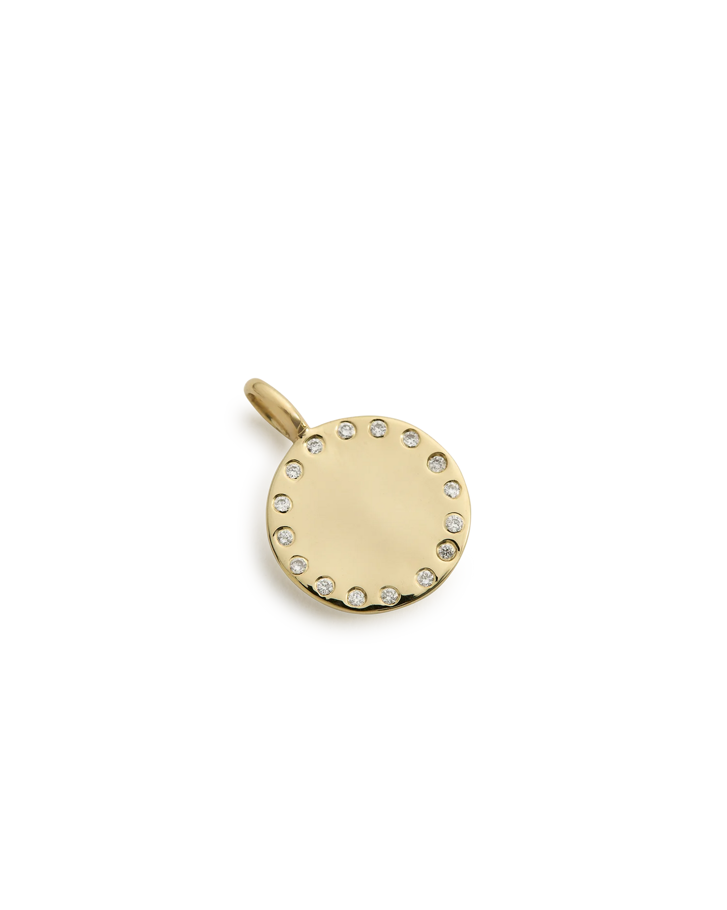 Basking in the warmth of the sun, we carry its innate power within us. With awareness to receive, we project strength and shine with vitality and joy. The Solar Charge Charm, adorned with a circle of the purest diamonds, symbolises inner strength and the life force of existence.
