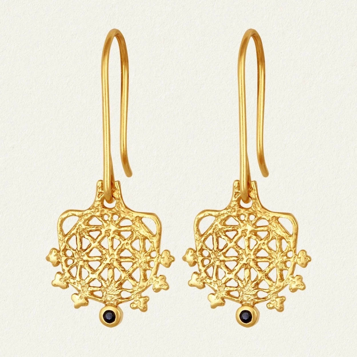 These textural drop earrings feature the Hittite sun disc, an intricate openwork motif honouring the Sun Goddess of Arinna.