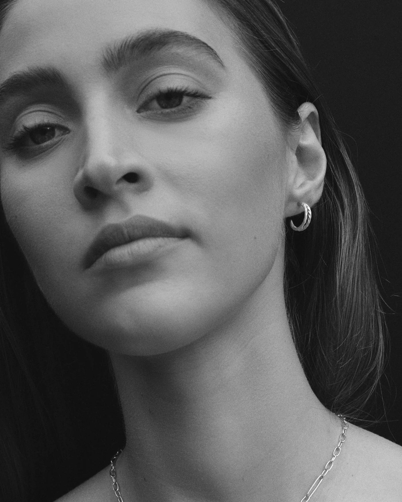 Crafted from softly textured recycled sterling silver, these small hoop earrings catch the light through the movement of their coiled form. Reminiscent of ram’s horns, the Priam Split Hoops symbolise strength, vitality, and renewal.