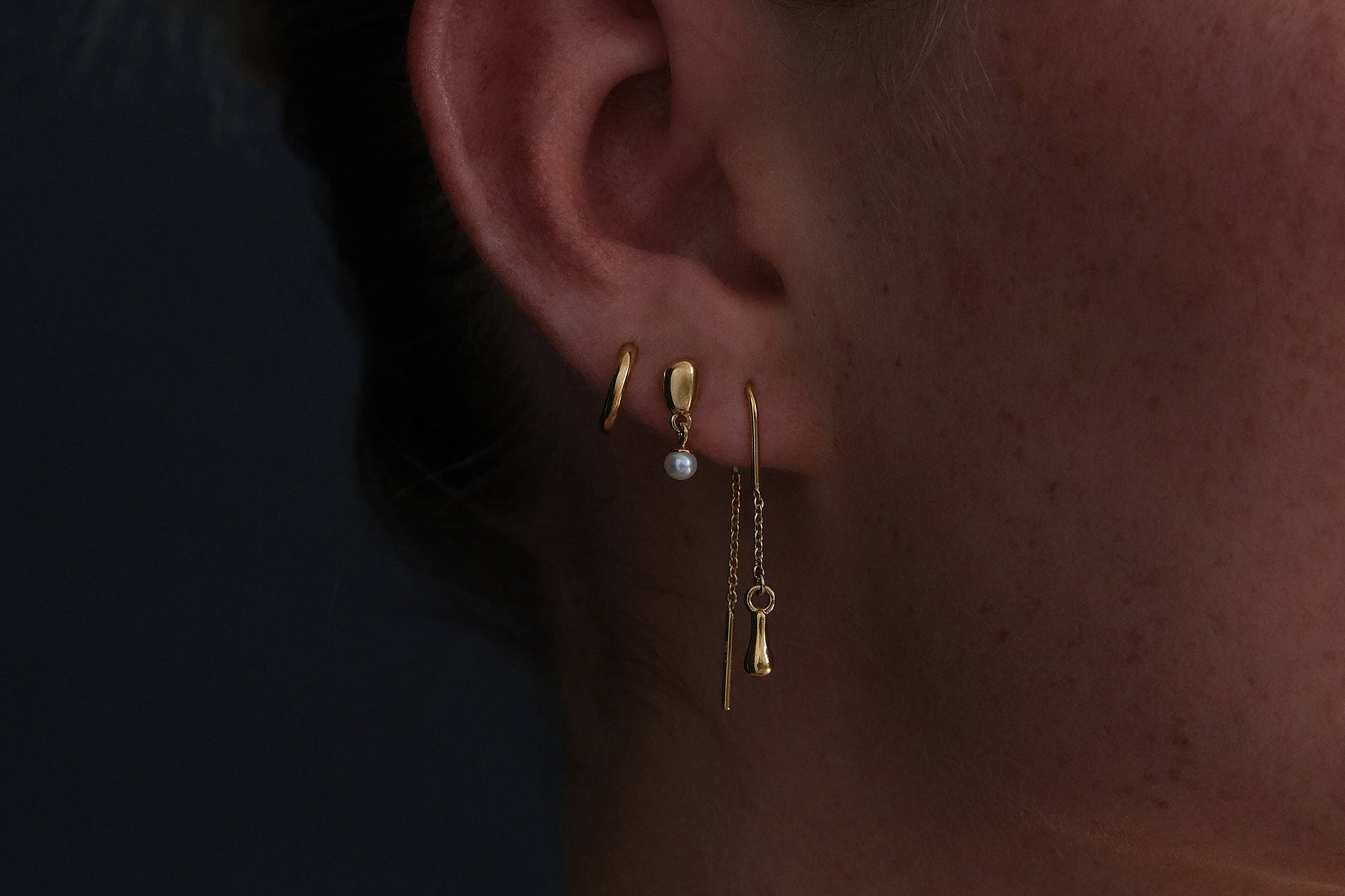 Featuring a drop shaped pendant hanging from a chain, these thread earrings are extremely comfortable.