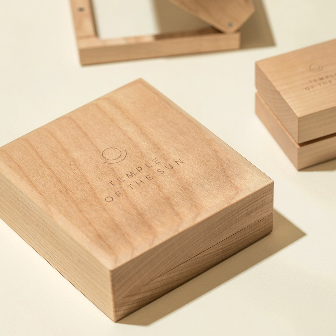 Each solid gold piece is presented in the signature Temple of the Sun sustainable wood jewellery box, hand-crafted from a single piece of New Zealand beech.